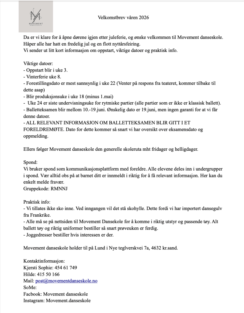 I 2026 starter vi opp med Movement Dansekompani. Kompaniet vil fungere som en egen enhet under danseskolen, med egen leder og økonomi.